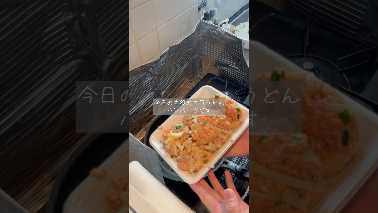 タイトル社会人3年目です。今日はニラうどんハンバーグ‼️#料理 #cooking #簡単レシピ #ハンバーグ#shorts #時短節約 #物価高 #社会人