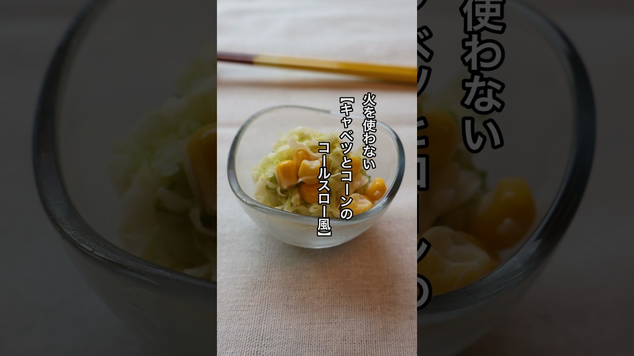 | タイトル | 【朝ラク】もうコンロいらないかも⁉️火を使わない簡単おかず♪キャベツとコーンのコールスロー風 #火を使わないレシピ #夏レシピ |