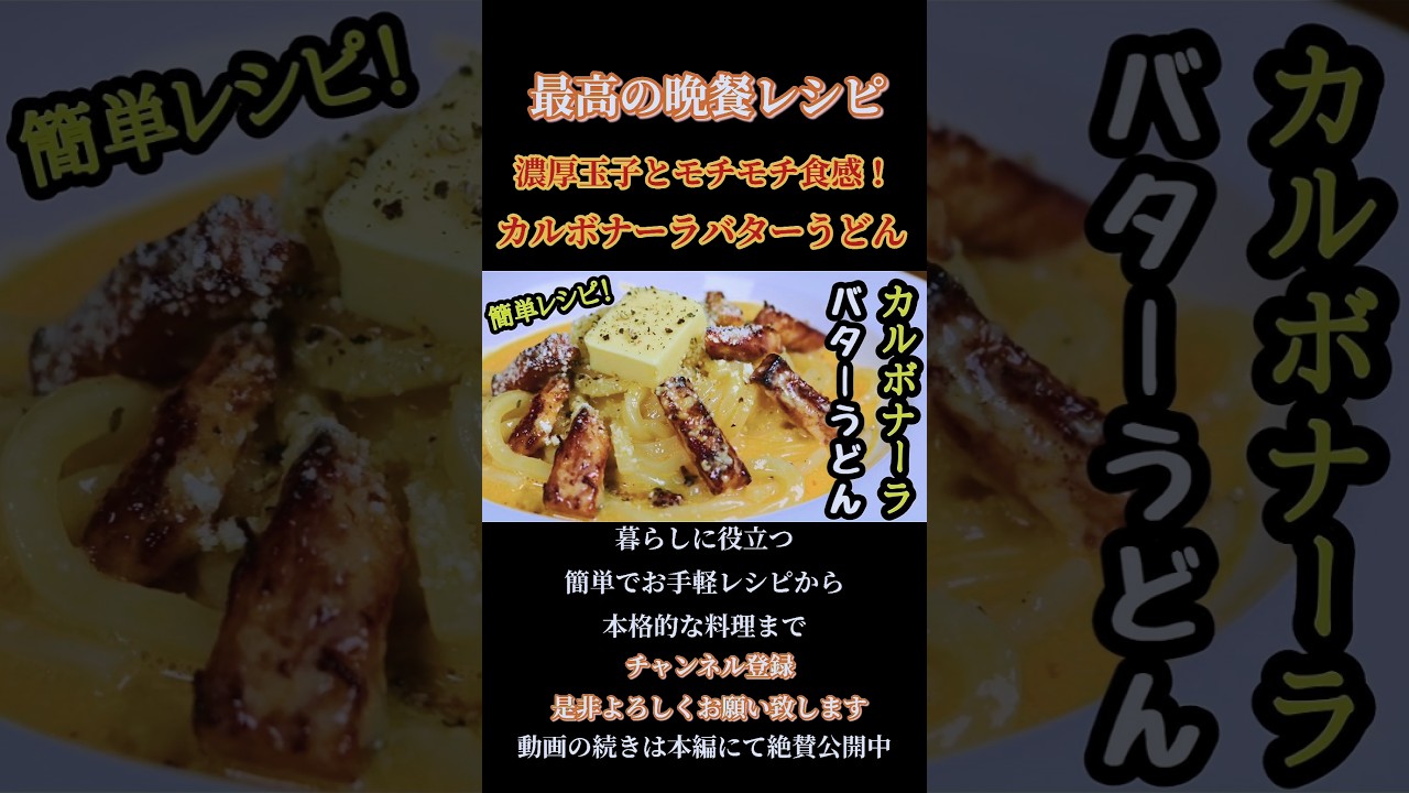 | タイトル | 【カルボナーラバターうどん】濃厚玉子とモチモチ食感#カルボナーラ#バター#うどん#パスタ#pasta#麺類#パスタレシピ#カルボナーラレシピ#簡単レシピ#shorts#shortsfeed#イタリアン |