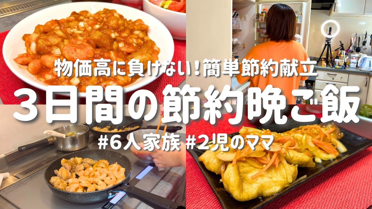| タイトル | 【3日間の節約レシピ】物価高に勝つ!簡単おかず3品で節約献立|節約主婦の晩ごはん |