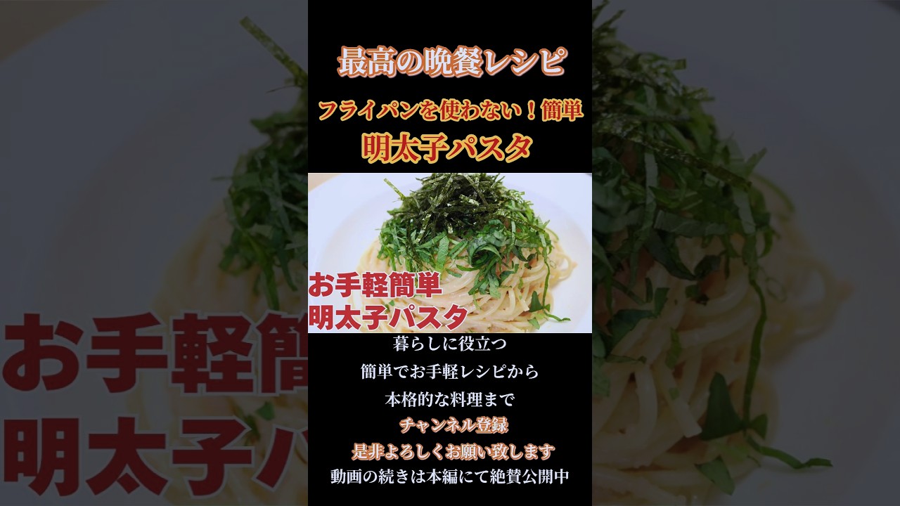 | タイトル | 【簡単!明太子パスタ】フライパン要らず!お手軽簡単明太子レシピ!#明太子#辛子明太子#shorts#shortsfood |
