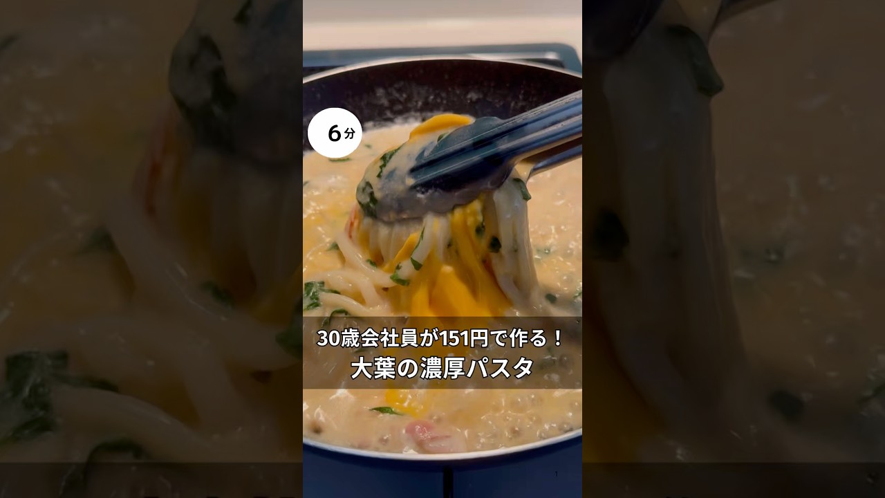 | タイトル | 30歳会社員が151円で作れる!大葉のクリーミーうどん #料理 #簡単レシピ#アラサー#独身#時短#節約#税理士#お金#会社員#クリーミー#大葉#カルボナーラ#うどん |