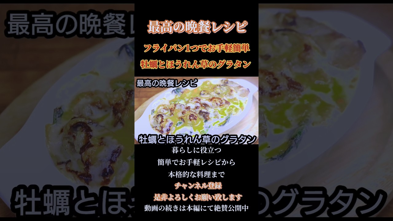 | タイトル | 【牡蠣とほうれん草のグラタン】牡蠣の旨味たっぷり!濃厚クリーミー!フライパン1つでできる簡単レシピ!#牡蠣グラタン#グラタンレシピ#牡蠣#グラタン#ホワイトソース#shorts#shortsfeed |
